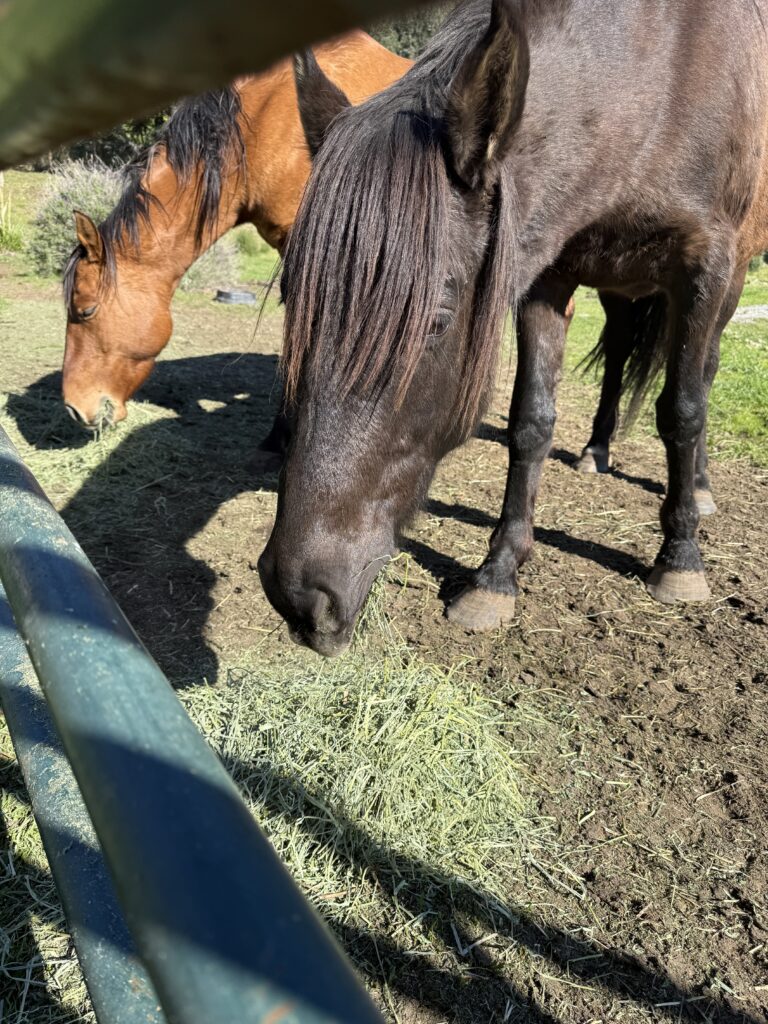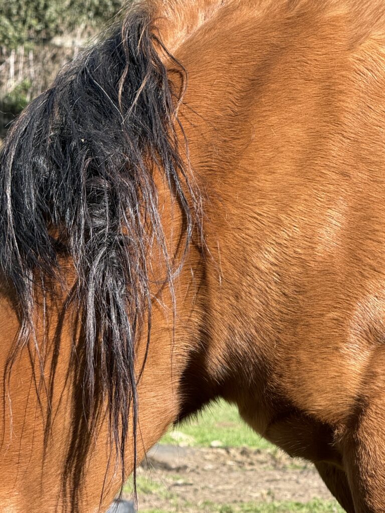 Raven, our black beauty, is in better shape. I pull out the trusty olive oil and casually add it to Robyn’s mane. Tomorrow we will check back. This is the first blog post of a weekly check-in 🙂